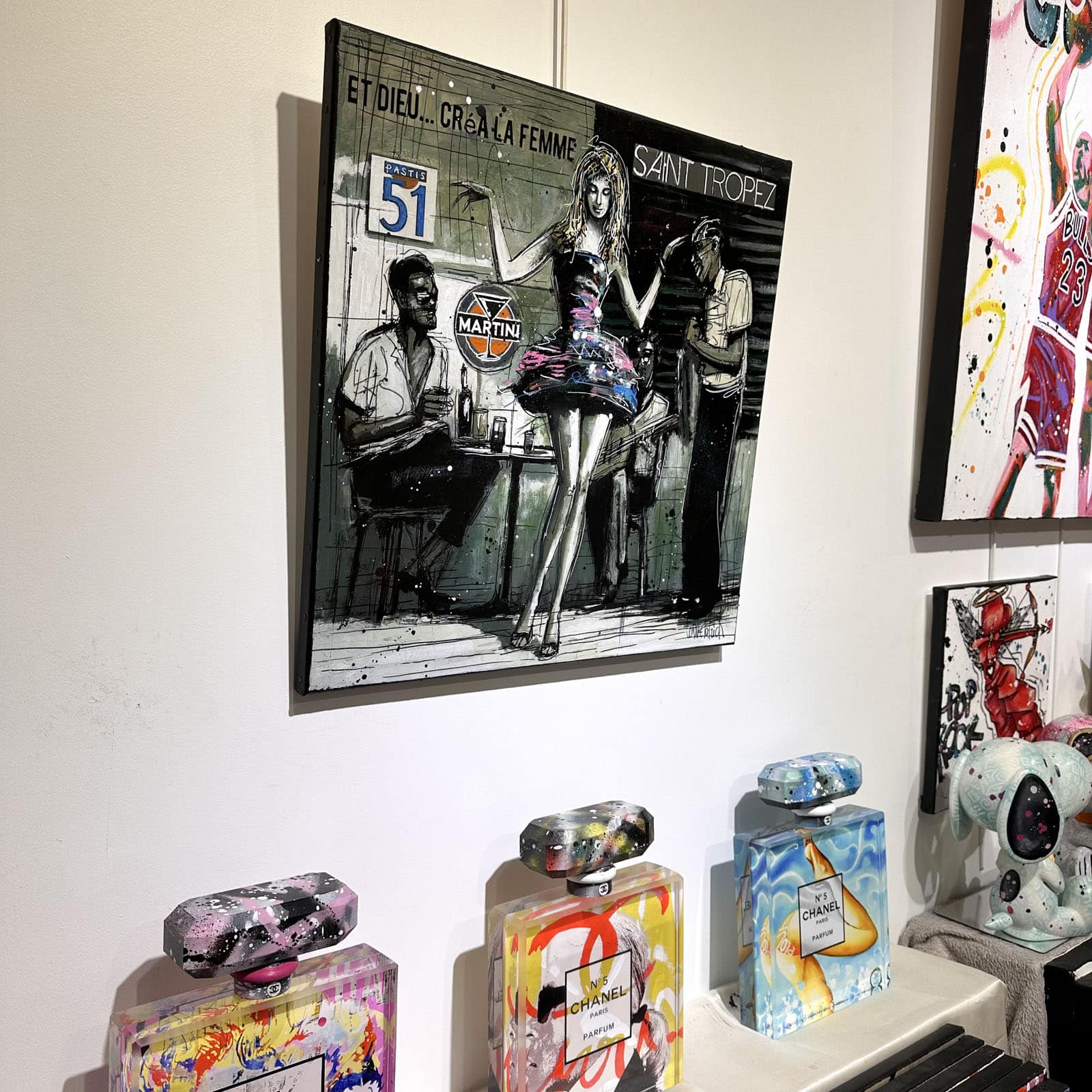 Tableau représentant Brigitte Bardot qui danse dans un bar à Saint-Tropez, la scène du film mythique de Roger Vadim.