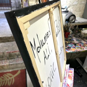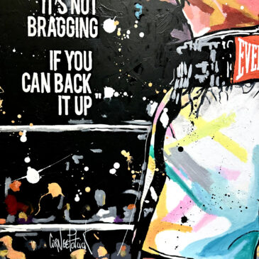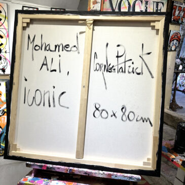 Tableau original de Mohamed Ali, huile sur toile, peinture unique de style pop street art aux couleurs vives, idéale pour une décoration contemporaine.